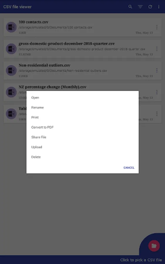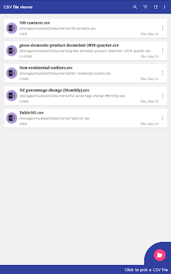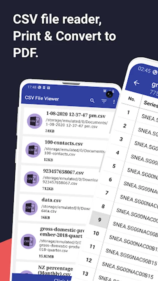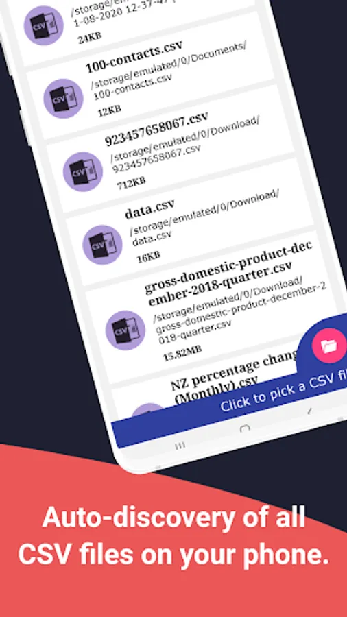 - Auto-discovery of all CSV files on your android device (Internal & External storage).