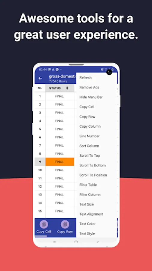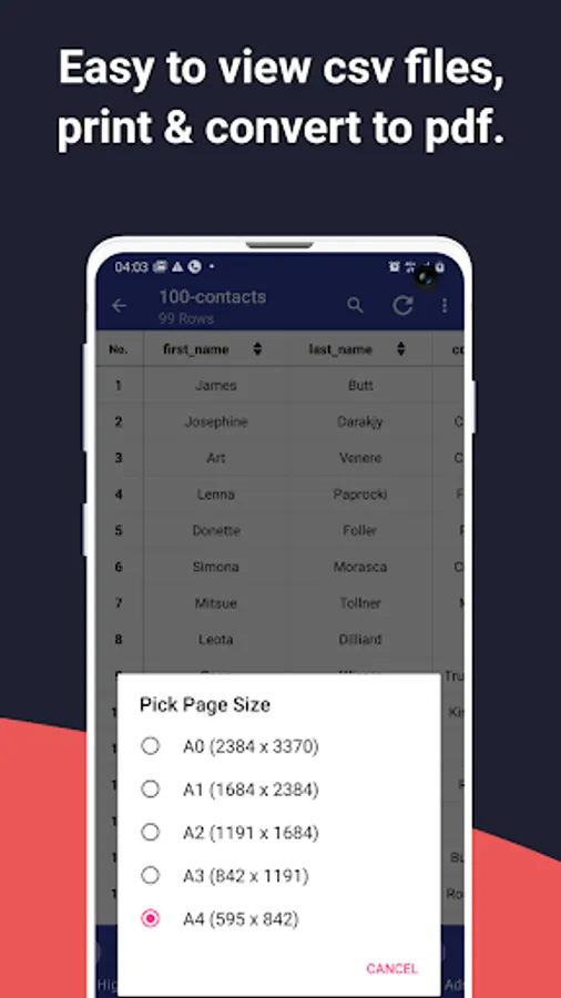 CSV File Reader is an awesome app for viewing both small and large-sized CSV files.