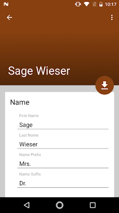 * Name (first name, middle name, last name, prefix, suffix, nickname, phonetic name)
