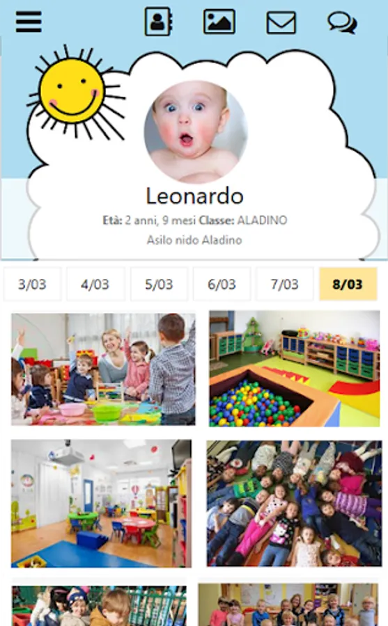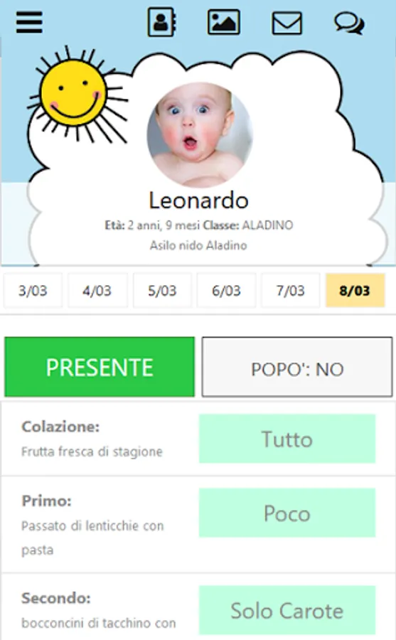Stay close to your child even when he is at the nursery, see what he ate in real time, receive notifications from the educators to know what is missing, discover the photos of the day, send data regarding food and health intolerances so that they are always within reach "view" of the educator