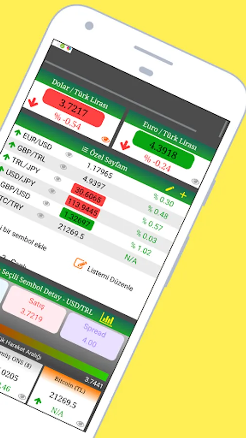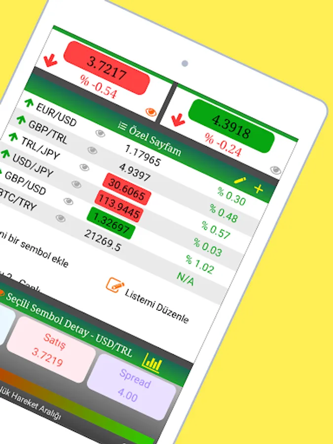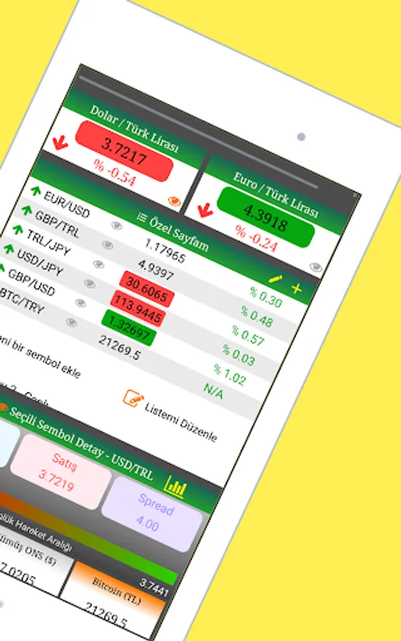 You can instantly monitor Dollar / TL, Euro / TL and Gold, Silver Prices with ForeignFX, besides, you can add more than 80 world parities to your special page and watch only the symbols you want to follow easily with instant updates. You can follow the detailed movement of all these added symbols live.
