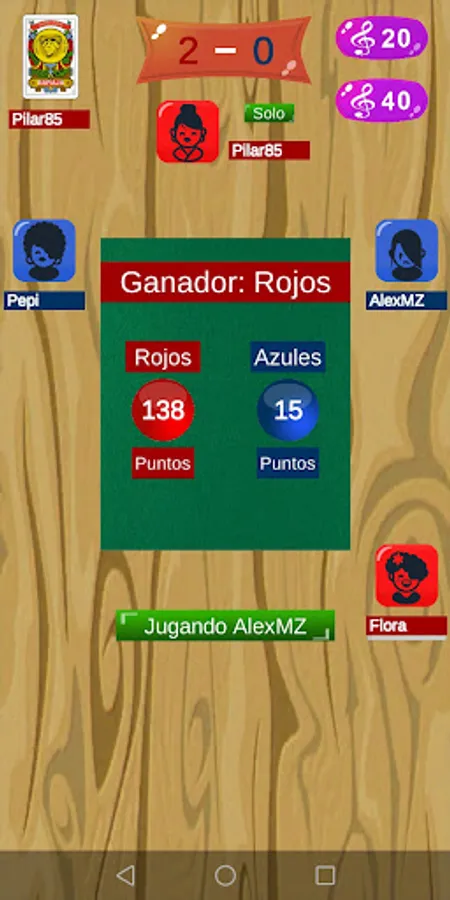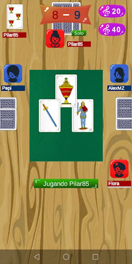 In Cuatrolas and Quintalas the score and the cantes have no value, since the hand is won according to the tricks won, and not by the points obtained.