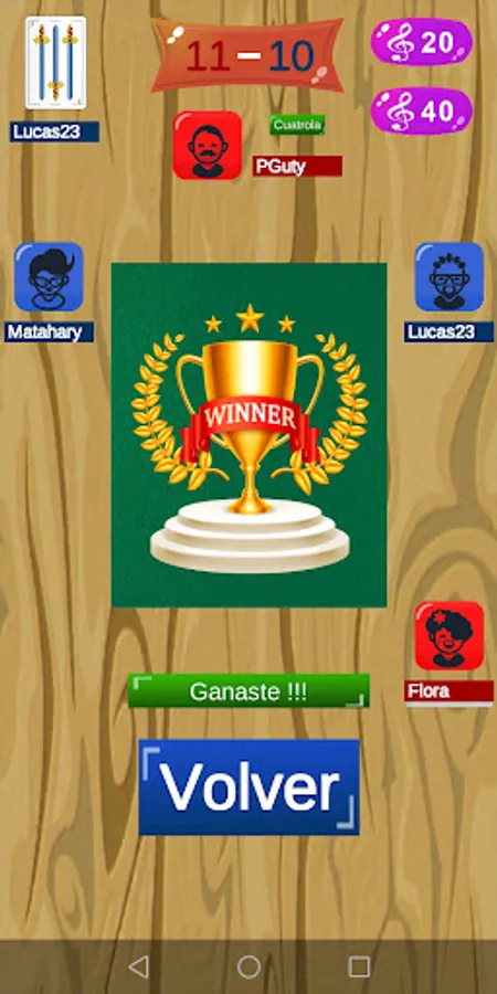 The game is won by the pair that gets the 11 starting points first. It must be won with exactly 11 points, therefore, if a pair has, for example, 8 points, a fifth or four cannot be played, but only one. The only exception of exceeding 11 points is when the points come from the opposing pair (for losing only one, four ...).