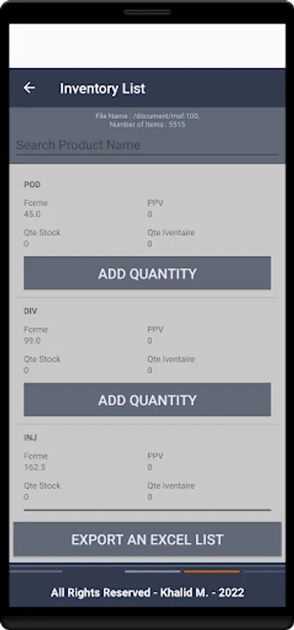 At the end of the inventory, the application provides a stock report in the form of an XLSX file to be exported to mobile and used on the management system to check the differences in inventory results.