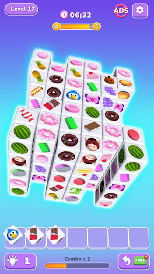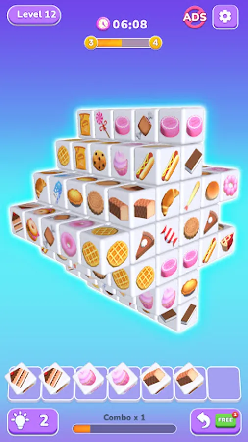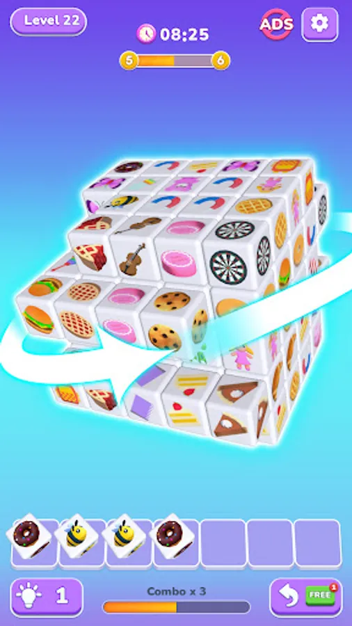 - Tap on cubes 3D that look the same and triple match to move them away.