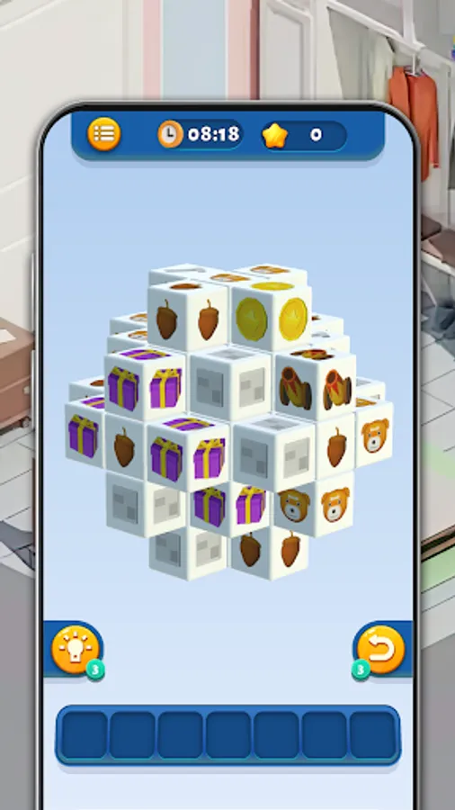 Get interrupted during match? No worries! Cube 3d matching master has a pause button for you when you need to shift your attention. But don't forget to come back to the unfinished tidying-up to complete the level!