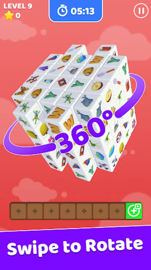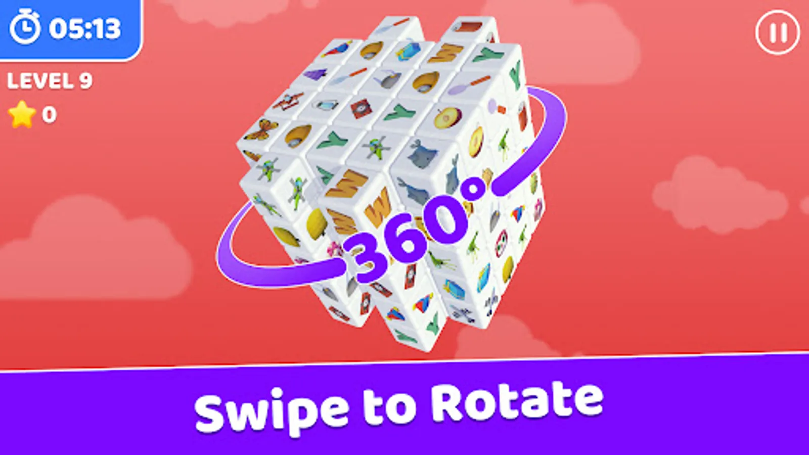 ◈ Swipe to rotate the 3D Cube puzzle board to find more matching tile pairs.