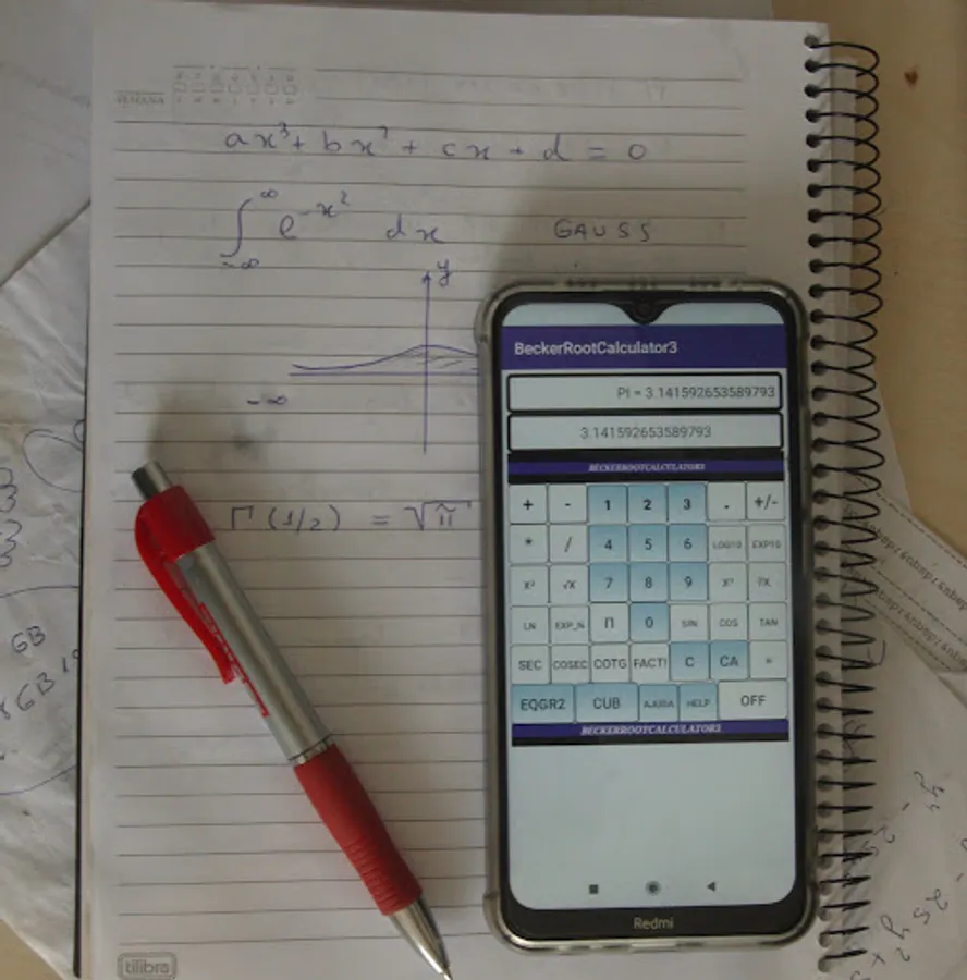 It is a scientific calculator, which can also calculate roots of equations of degree two and three, in addition to producing the respective graphs.