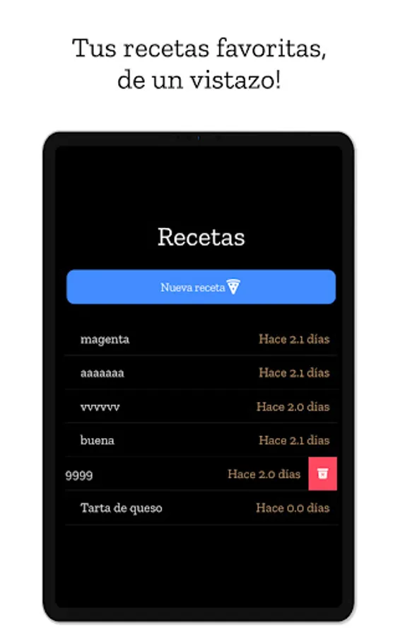 Recipeat is an app that allows you to keep track of how long you haven't prepared your favorite recipes. With a simple gesture you can reset the time of a recipe and thus the last time you cooked it will be recorded.