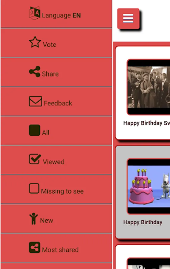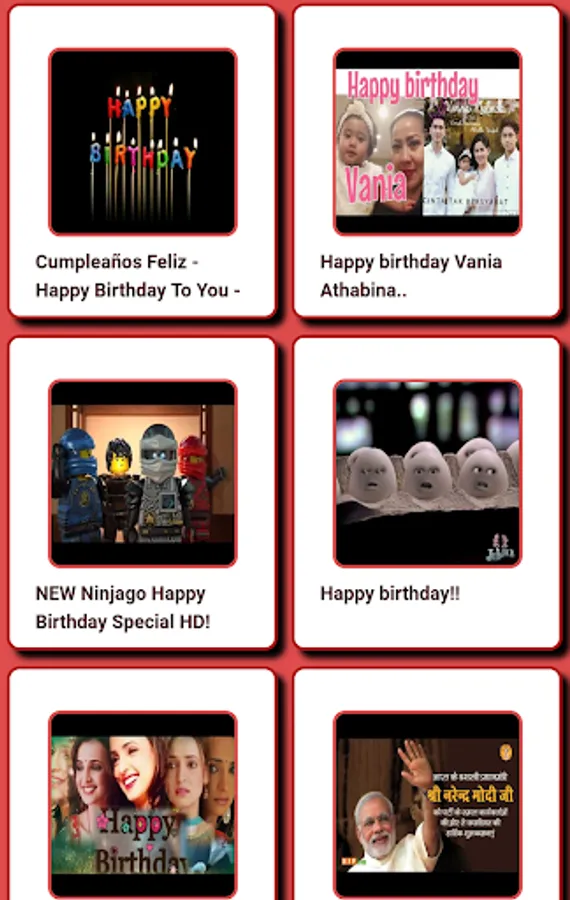The application registers your videos watched and marks the new videos that you have updated, so you do not waste time, and enjoy the easier way Happy Birthday. So do not waste any more time and download this free application on your mobile (cell phone) or Tablet and you will not regret it, enjoy your home from the wonderful world of birthday greetings.