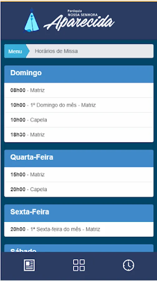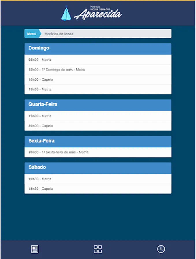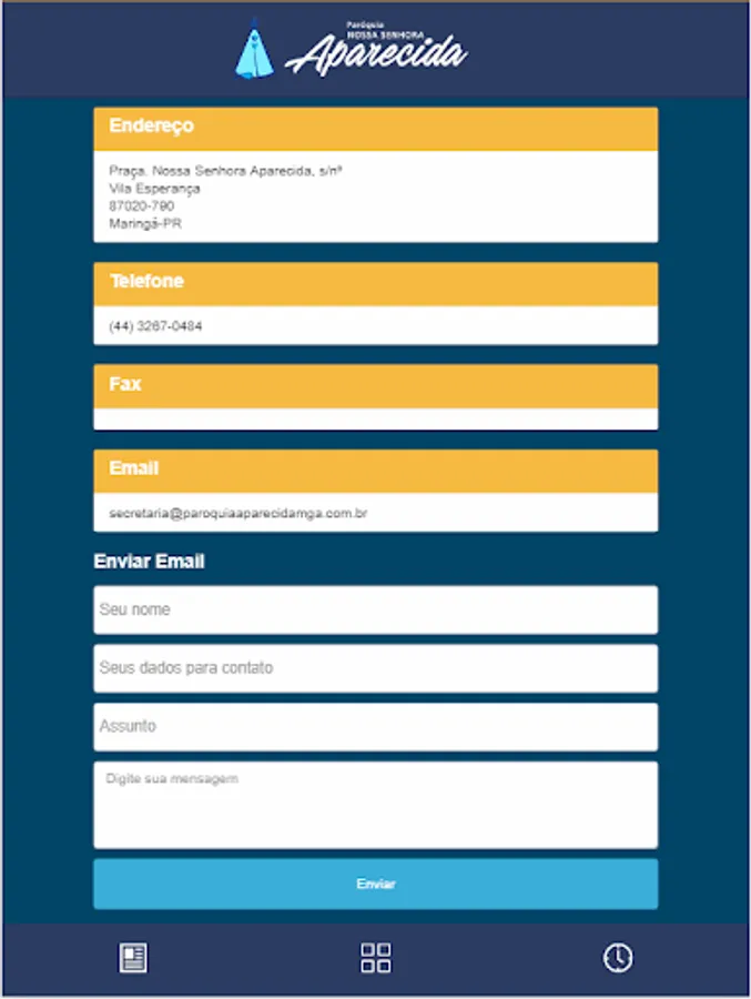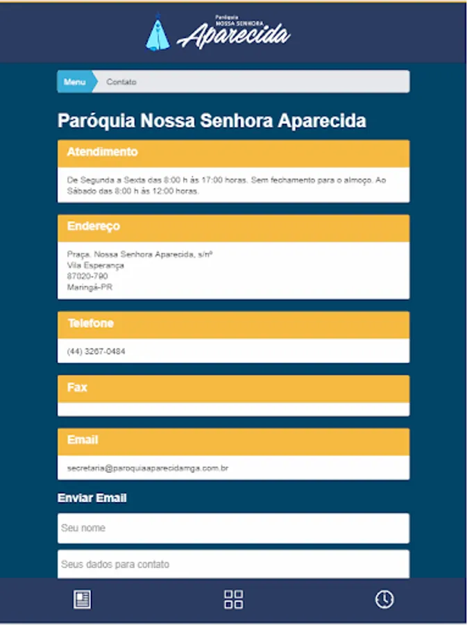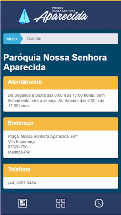Install the Parish of Nossa Senhora Aparecida de Maringá and have the mass schedules, news, clergy information, events, photos, videos, contact information and much more available.