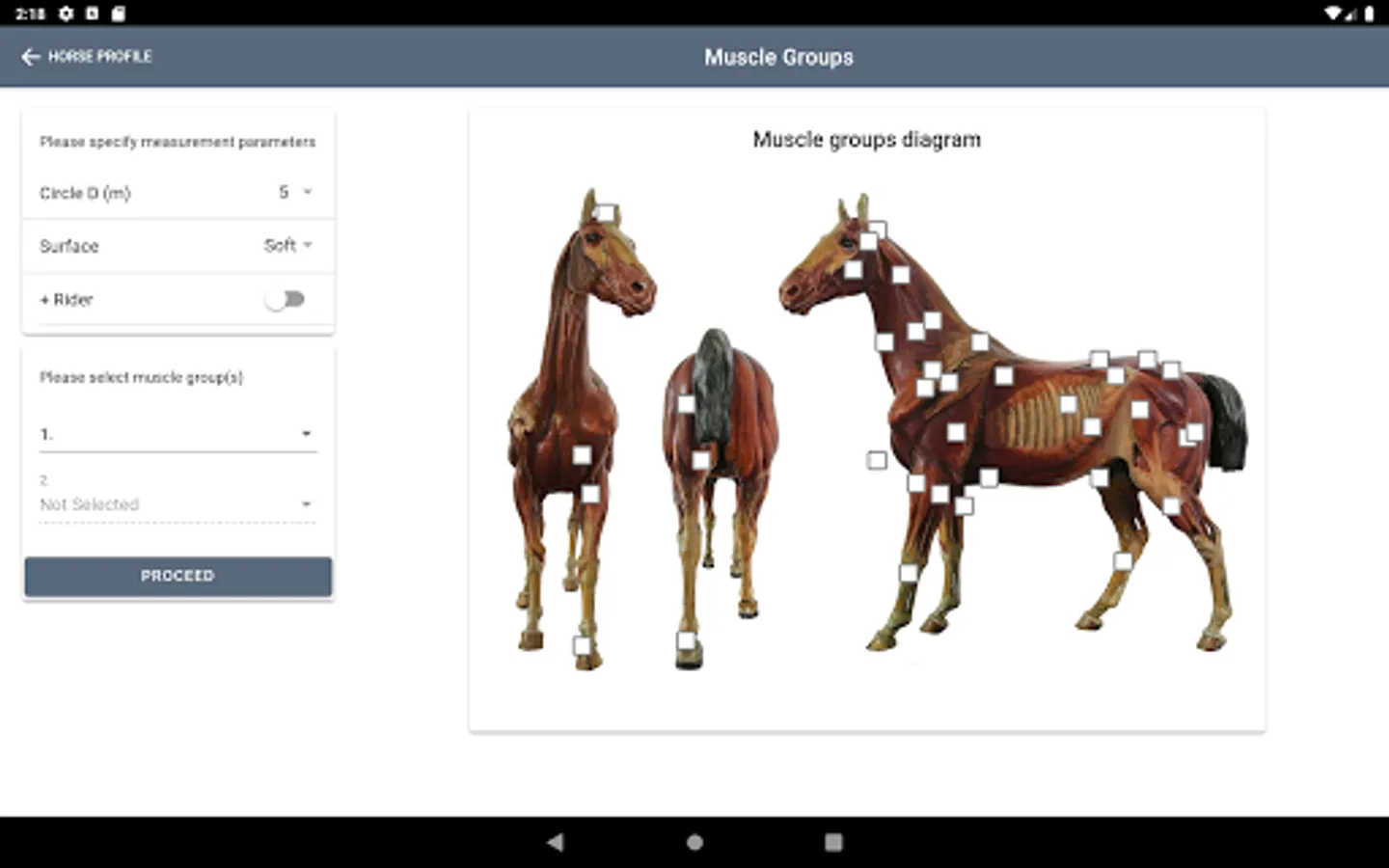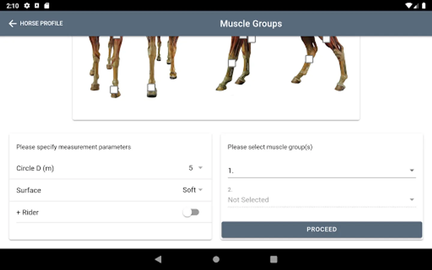 The CURO Equine app is designed for Veterinarians and Horse Trainers and works together with a MyoDynamik CURO system to record muscle contractions during periods of physical activity.