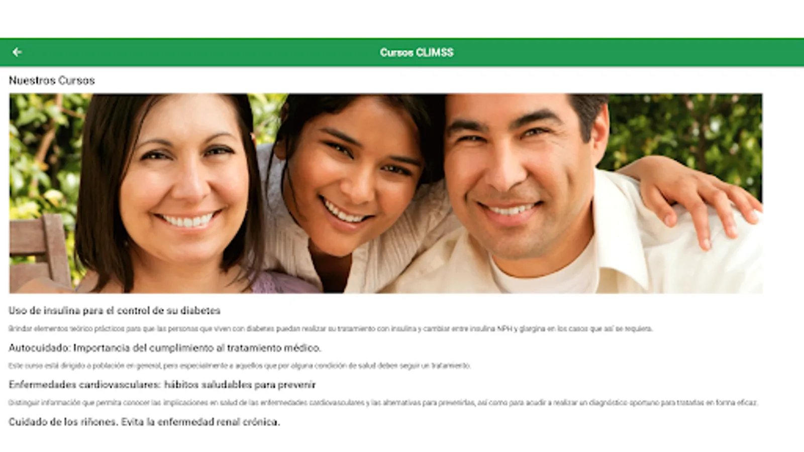 The IMSS gives free workshops through the CLIMSS Massive Online Courses platform, aimed at the general population, with the aim of disseminating the prevention and care of diabetes. The courses are prepared by IMSS experts.