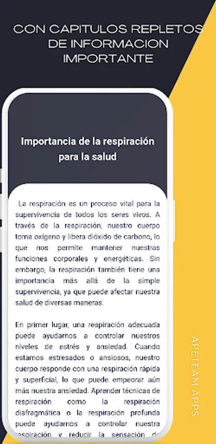 The "Breathing Techniques Course" application is a complete guide to learn and practice various breathing techniques that help to improve health and well-being. With a clear and easy-to-follow content structure, this course provides essential information about the anatomy and physiology of breathing, as well as the benefits that regular practice of breathing techniques can bring to our daily life.