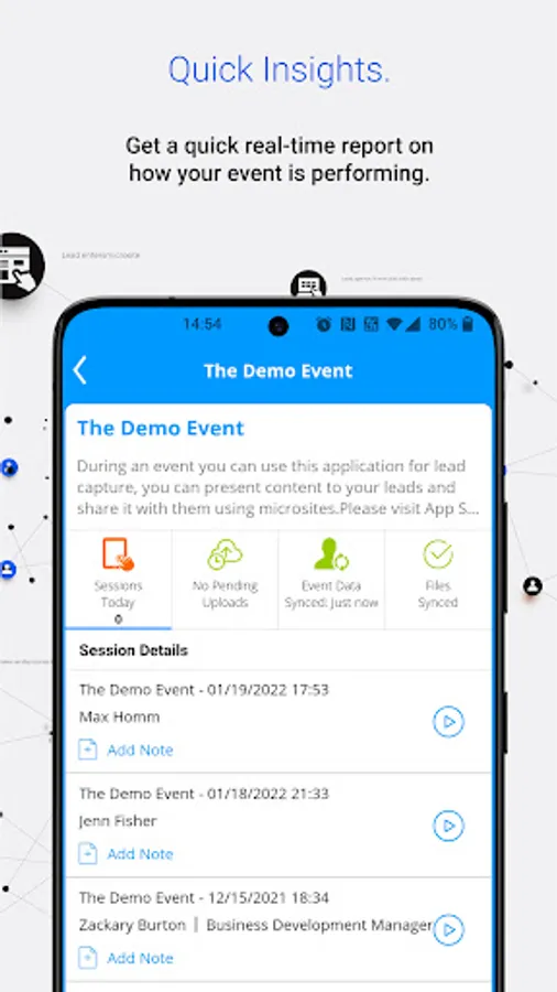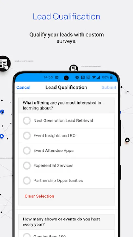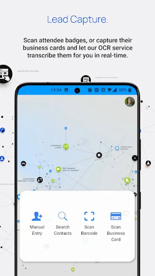 - Scan QR or Barcode badges for lead capture