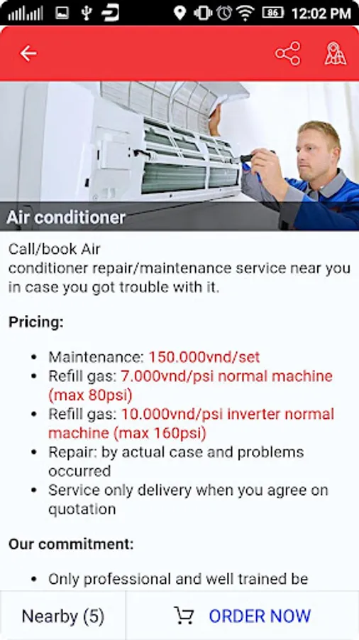 You can choose the best one depending on Distance/Location and/or their Reputation based on rating & review to serve. Only when you chose the service provider, they will know your location on the map, phone number to communicate with you to deliver the services. The price for onsite service delivery may be a difference in the price of repair shop because of moving and equipment, you can refer the price’s listing on the app for detail.