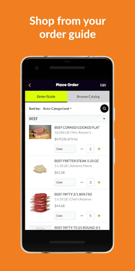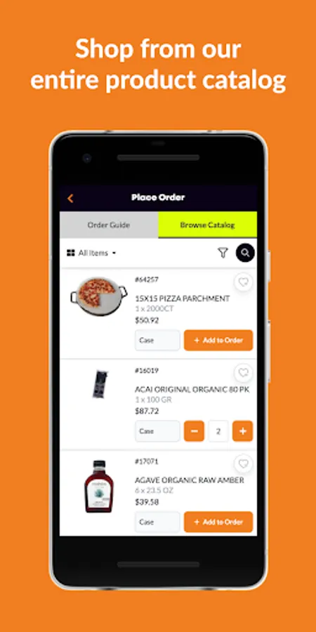 * Explore our extensive product catalog with item photos and detailed attributes like nutritional info.