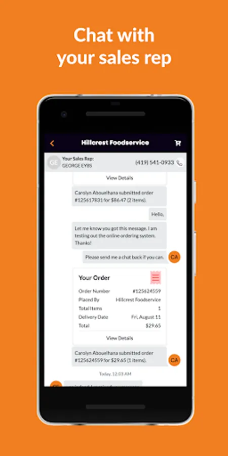 * Stay connected with your sales rep and the Hillcrest team through in-app chat.