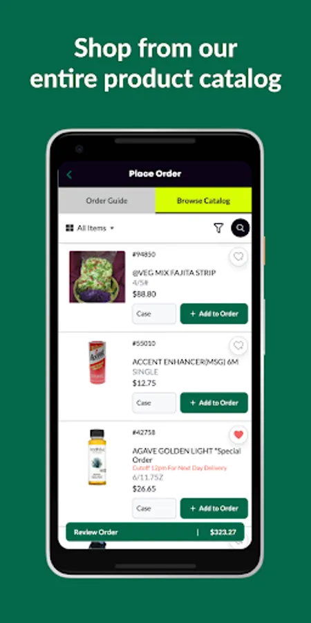 - Explore our extensive product catalog with item photos and detailed attributes like nutritional info.