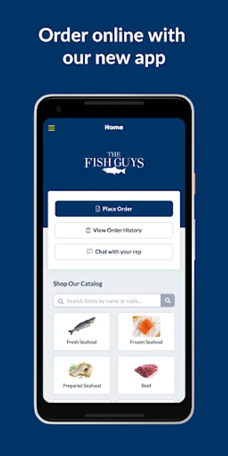 - Stay connected with your sales rep and The Fish Guys team through in-app chat.