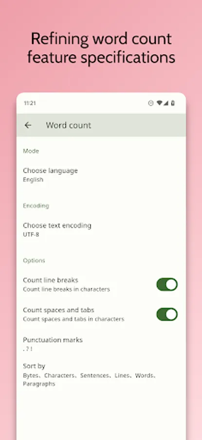You can customize the word count feature based on the text by switching languages. You can also configure text encoding, punctuation, and more.