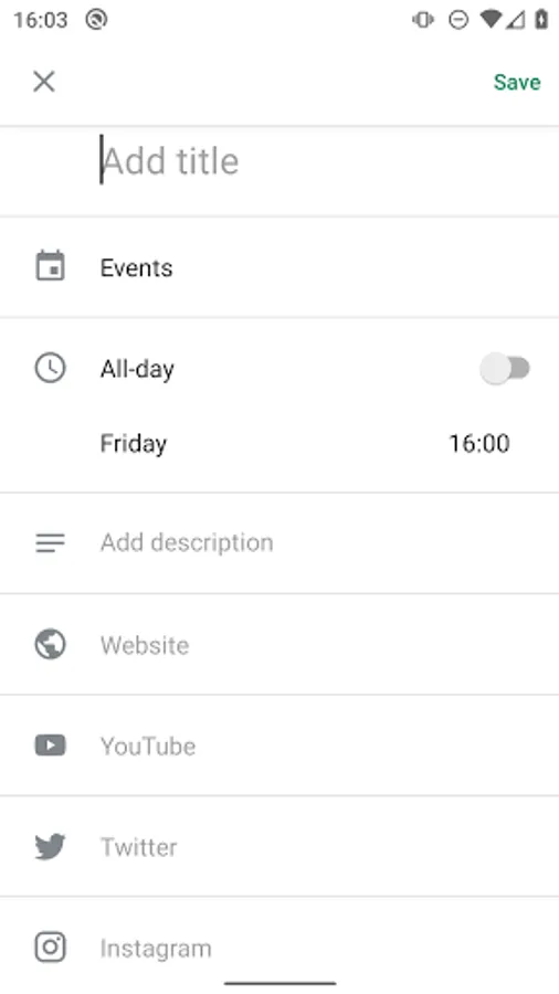 You simply need to fill in the event name, select a time and save. After that, you can simply swipe left and right to see what's coming up in your schedule.