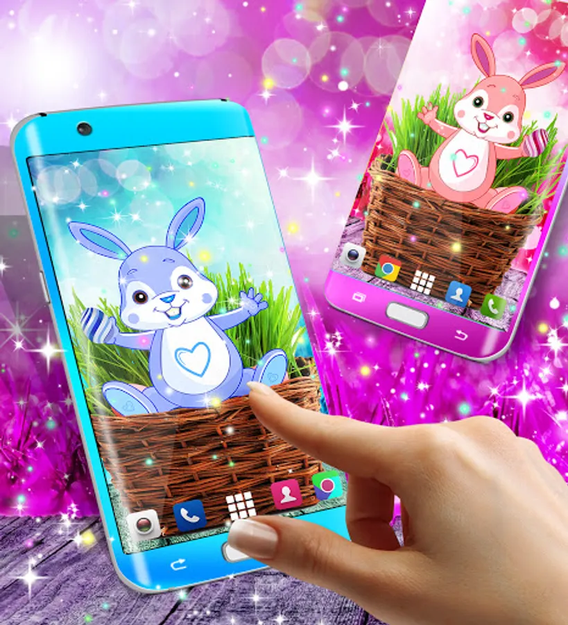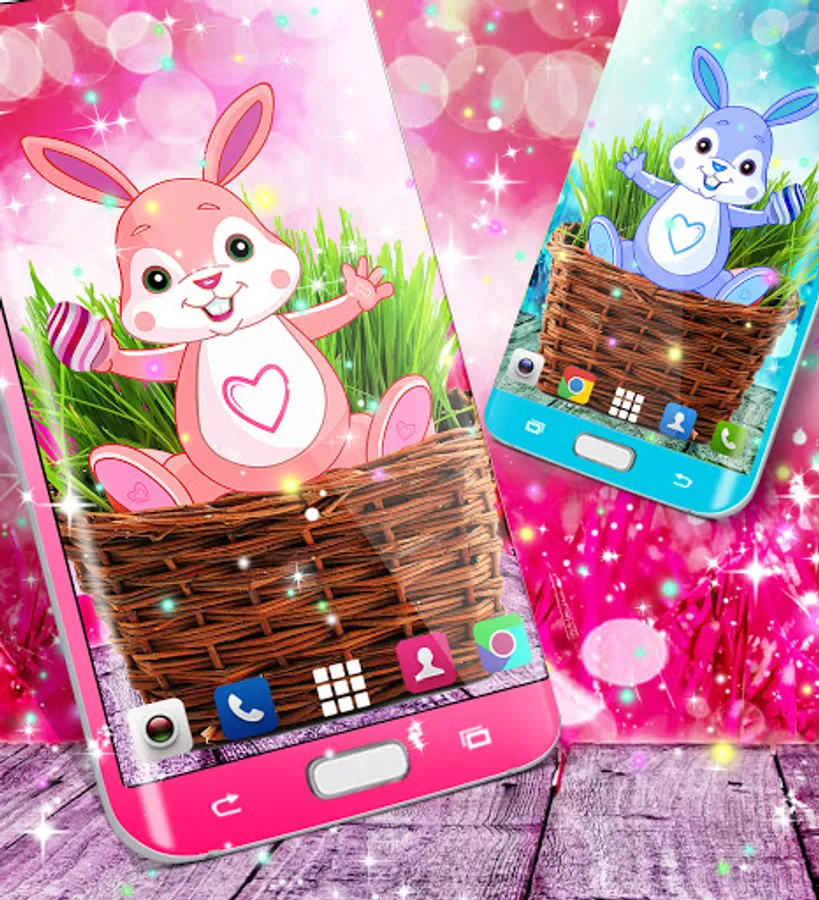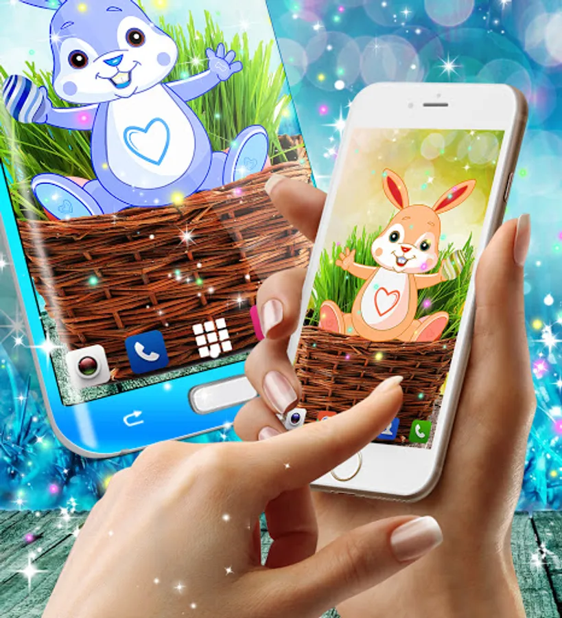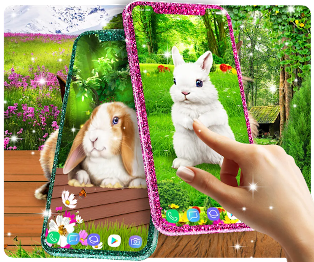 We have a very special live wallpaper for you with cute fluffy bunnies, real or cartoon design that will be perfect for Easter season or everyday. All wallpapers contain bunny animals in different shades as white fluffy or brown.
