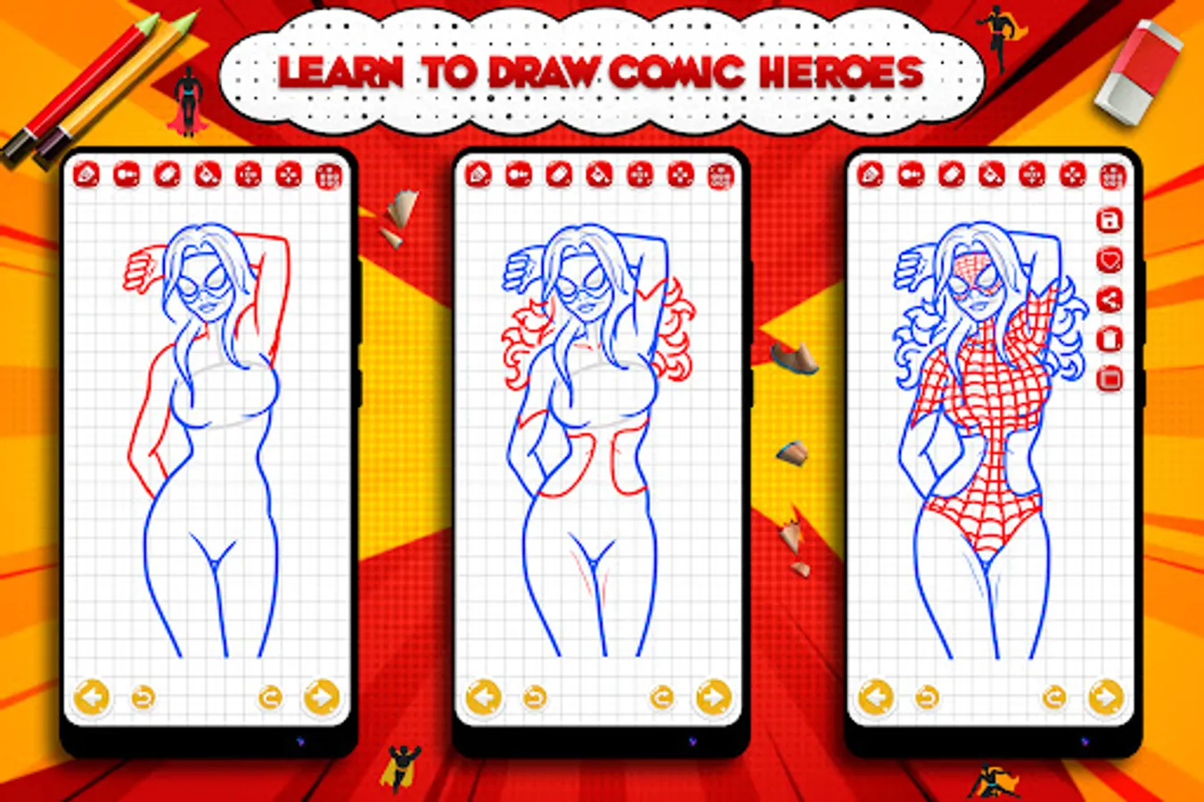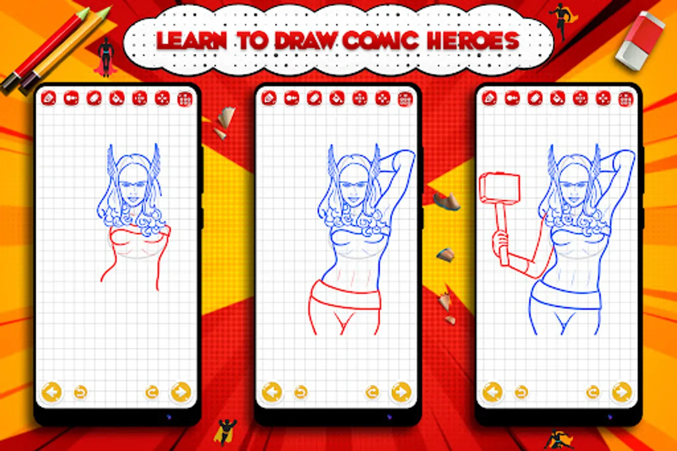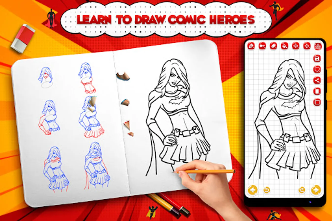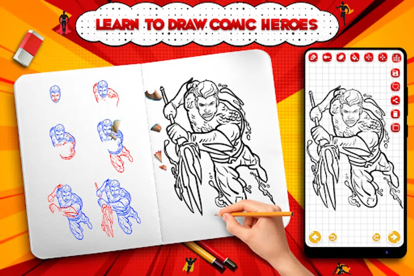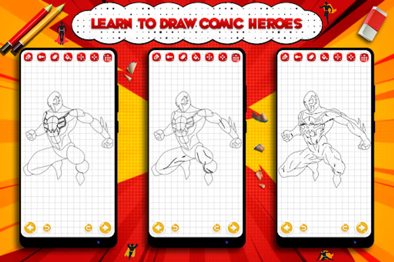 Learn to Draw Comic Heroes is perfect app for those who want to be an artist and love drawing comic superheroes. This app teaches you how to draw super hero characters in simple steps and improve your confidence of drawing and coloring.