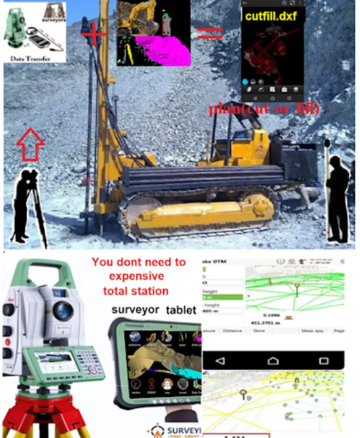 You can read help menu and use app. When you transfer data to your mobile then you can use other apps to control the tunnel ,cut and fill ,draw plan , Topography , section , 3d picture in autocad , Travese , ..