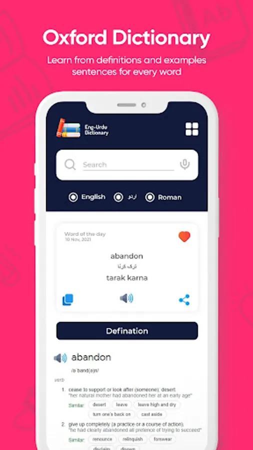 Are you studying English and you want to know the meaning in real Urdu language. Then this dictionary is for you. A complete offline English to Urdu and urdu to english trainer. You also can say its English-Hindi Dictionary. Indian Dictionary, Pakistan Dictionary, Asian Dictionary.