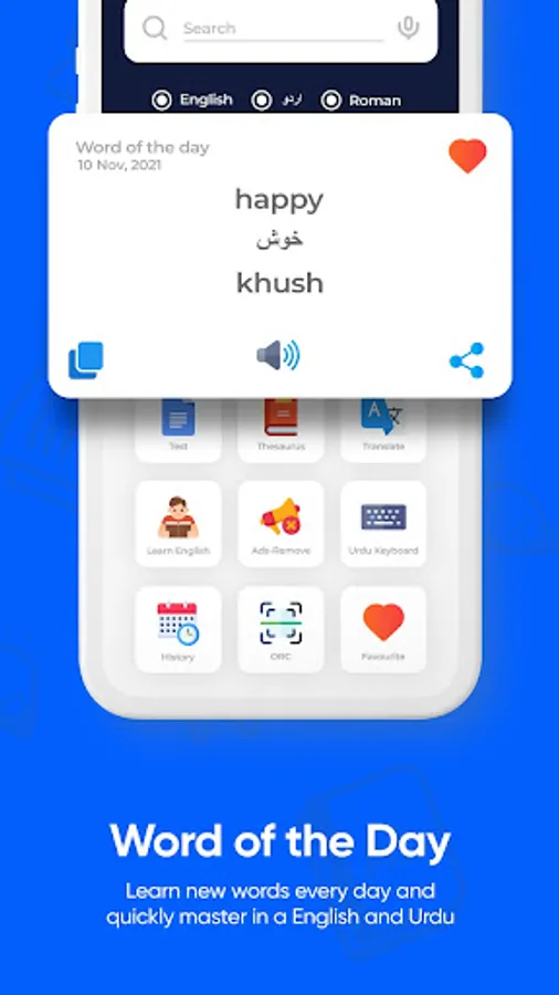100% Free Offline English to Urdu dictionary. It has embedded Urdu font which doesn't require any additional Urdu feature on your device. Its just smooth and pain-less. The vocabulary is constantly being updated.