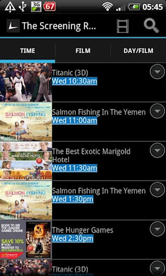 Long press on the film poster for actions (trailer,info,imdb,reviews)