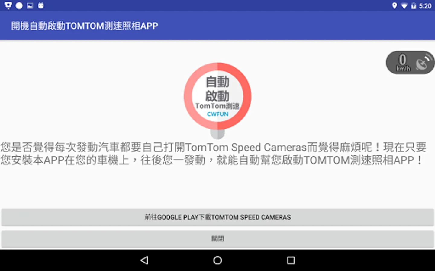 Please note! Due to Android security mechanism factors, please open the APP at least once, and then there is a way to automatically start TOMTOM speed camera for you!