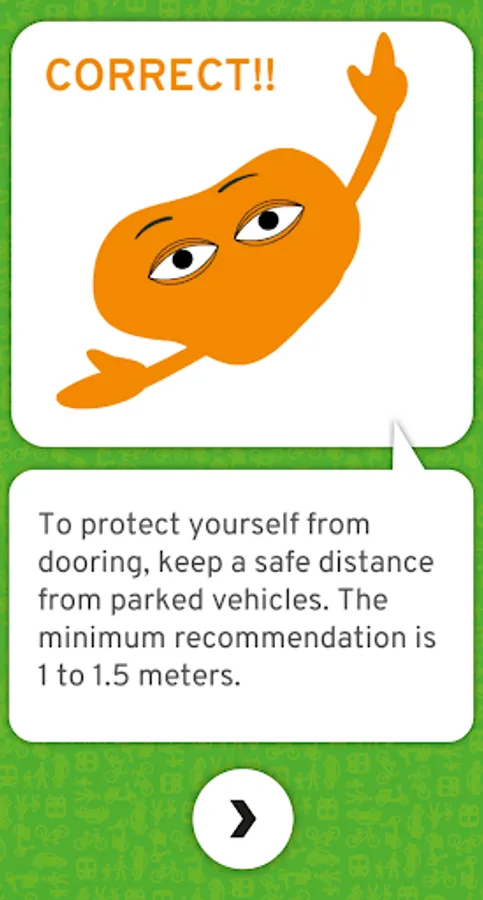 The "VIA - Global Road Safety Education Game" includes short questions about road safety that have to be answered to complete the 5 levels. The answers will be explained. A morphing character guides through this learning game.