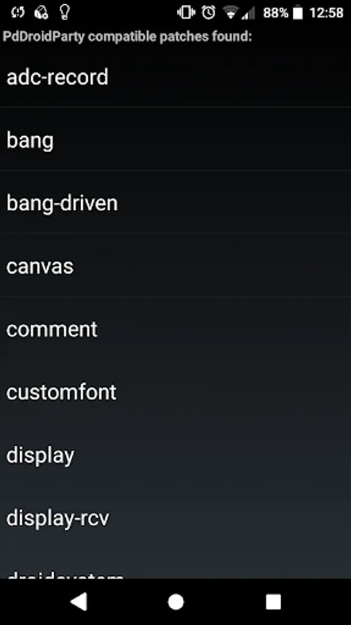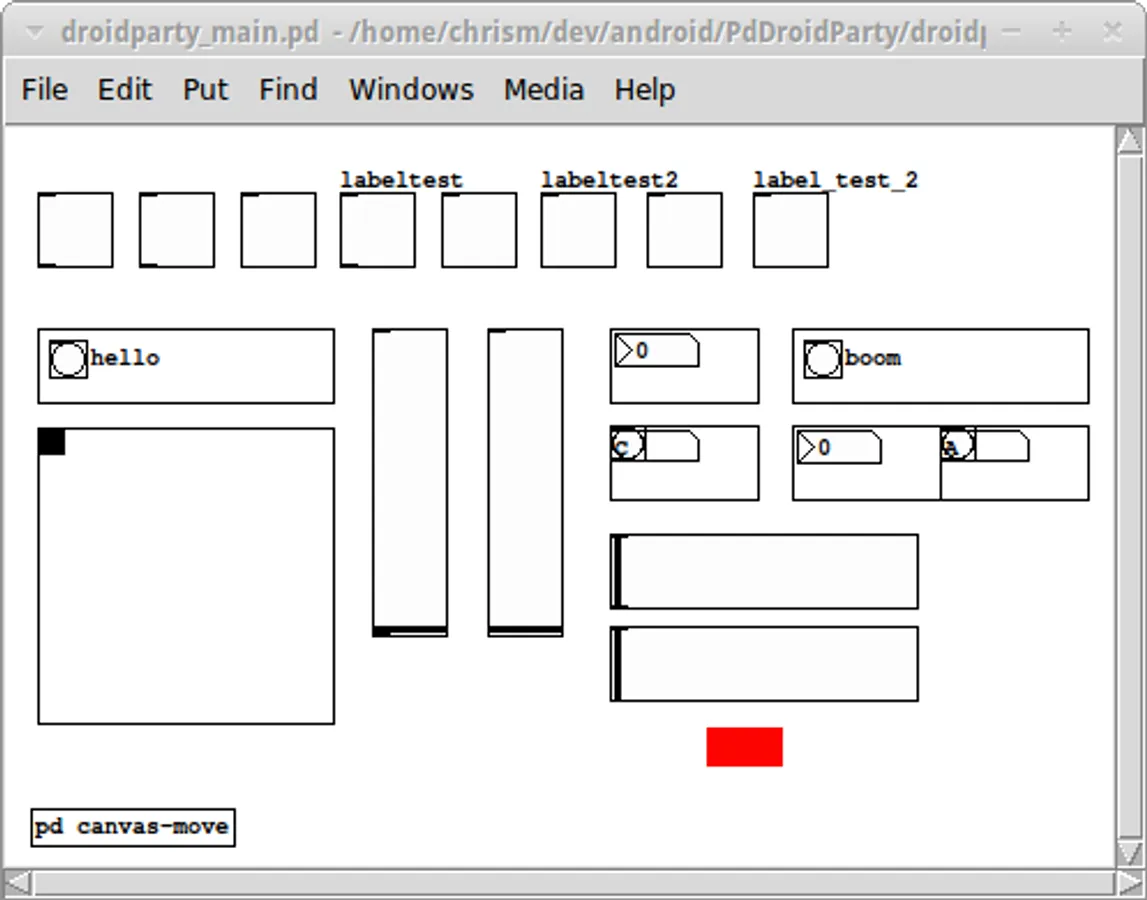 The way it works is you create a special patch called droidparty_main.pd in your project folder and then copy the whole folder onto your device storage. PdDroidParty will show you a list of all of the folders containing a droidparty_main.pd file and when you choose one the patch will be loaded. When you run the droidparty_main.pd patch the user interface will be emulated by PdDroidParty and can be themed with SVG widgets.