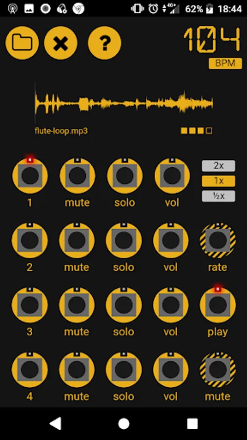 This app sends a sync signal that is compatible with the PO in SY4 & SY5 mode. All you have to do is connect your device's output with the PO's input using a 3.5mm stereo audio cable and press play. You can mute, solo, and set the volume for up to four different loops.