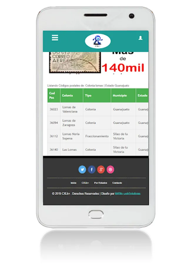 More than 140 thousand #postal codes of Mexico on your cell phone, search by zip code, by name of the neighborhood, by state or combine neighborhood, city and state.