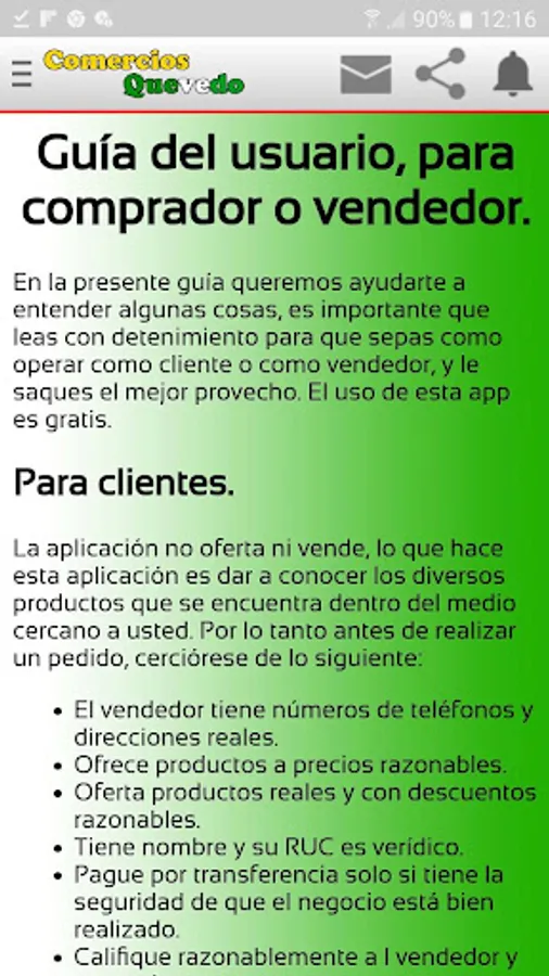 This application aims to promote businesses in the Quevedo canton in a free and direct market style, thus developing sales by order, such as publicizing the commercial activity of the aforementioned canton, in this first version, customers will be able to to know the prices and to compare, in addition the sellers will be able to make themselves known for free. Customers can also upload products or exchange if necessary, barter.