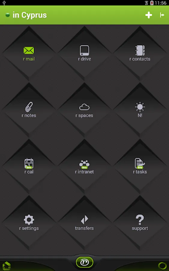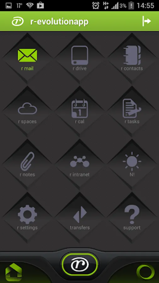 The resulting r-evolution app is an entire suite of applications in one app, connected at the data level, with a uniform interface and navigational structure. The applications are mail, drive (documents), calendar, tasks, files, projects, contacts, notes, intranet (business social network) and plate (a unique cross application data workspace).