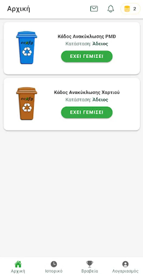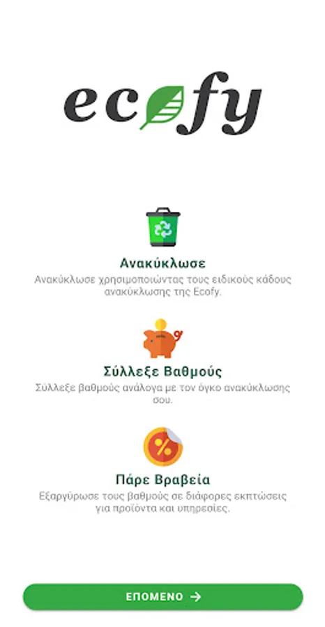 Ecofy is a remunerative recycling platform that aims to increase recycling rates in Cyprus. Through our application, citizens have the opportunity to earn points each time they recycle, which they can redeem at various rewards, such as discounts on various products and services.