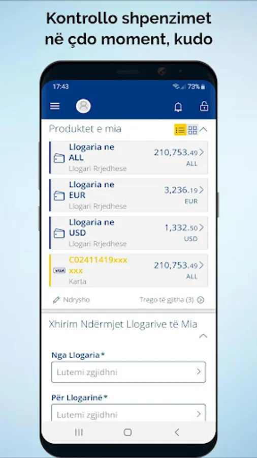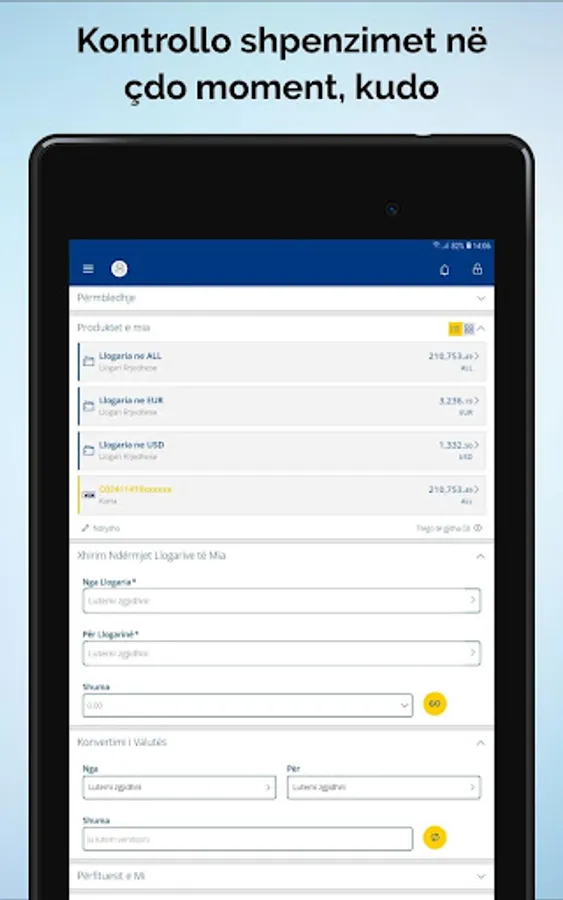 • Kontrolloni gjendjen e të gjitha produkteve bankare: llogari, kredi, depozita apo kartat tuaja.