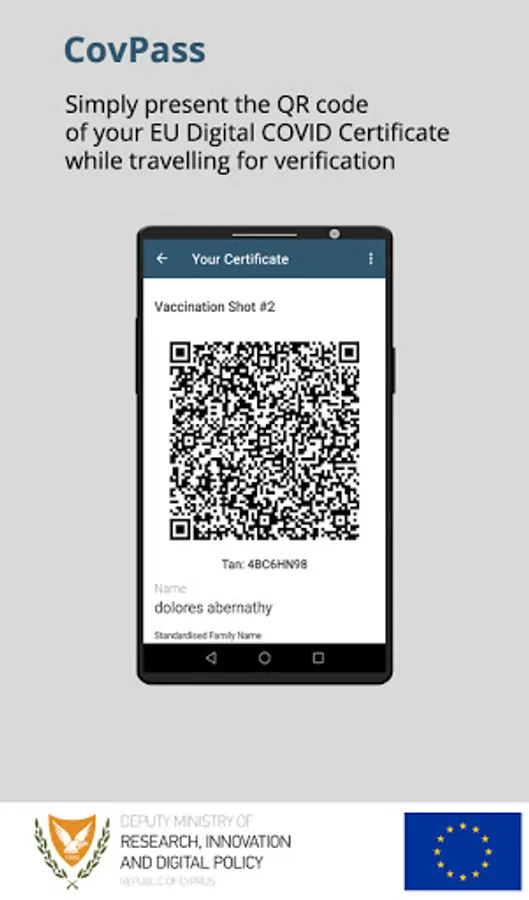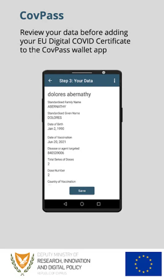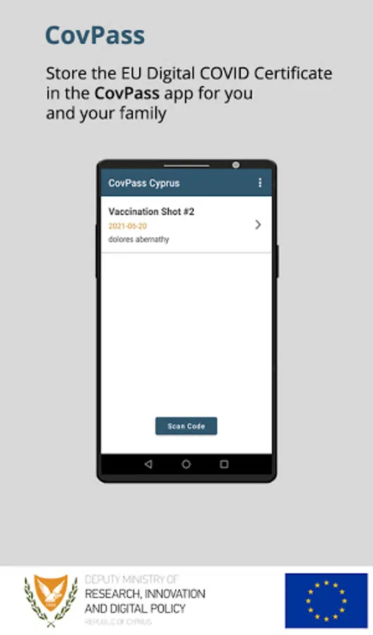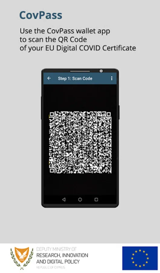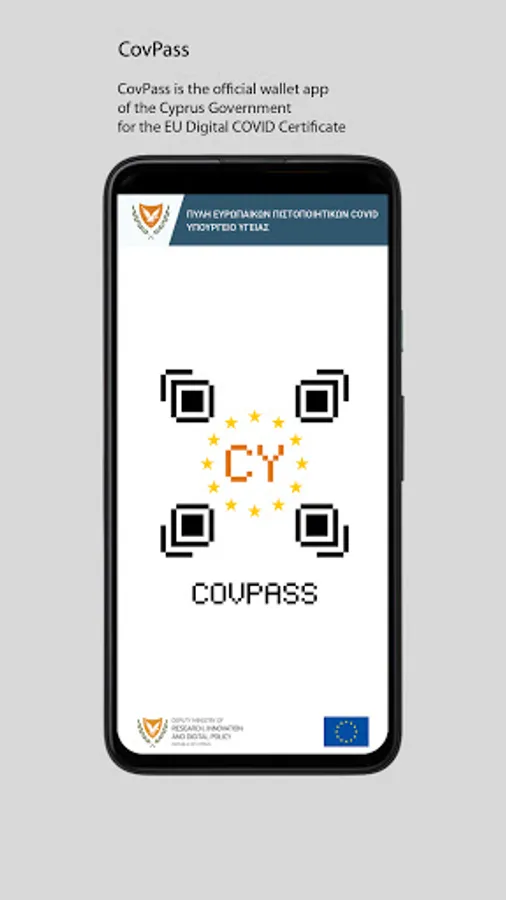 The official wallet application of the Cypriot Government where users can scan, save and access their EU Digital COVID Certificate (EUDCC).