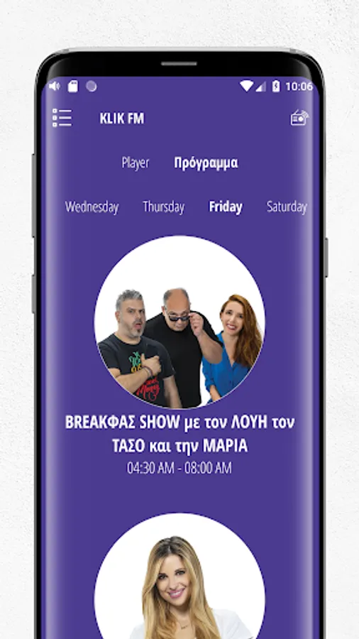The station Playlist consists of all the new successes of Greek repertoire by adding major English successes without forgetting and older hits that marked Greek music.