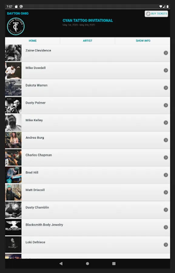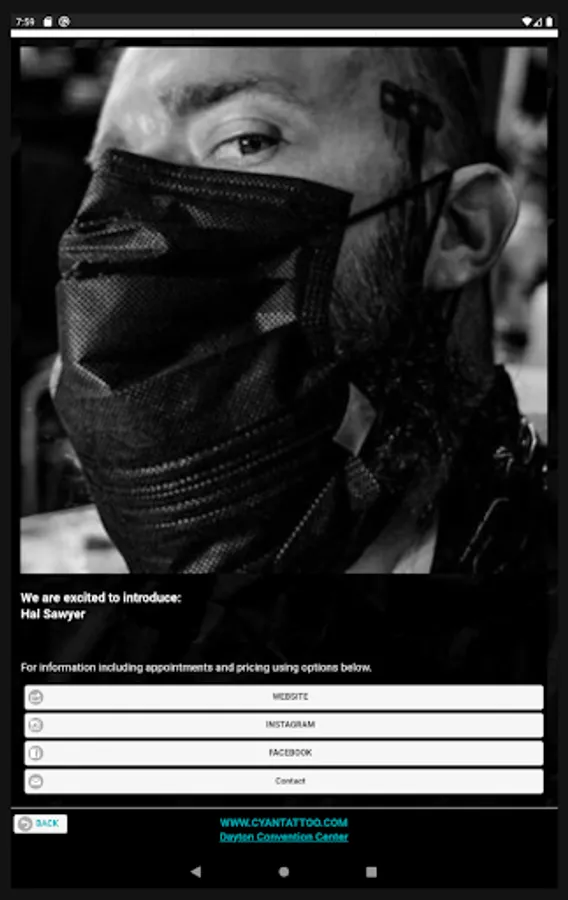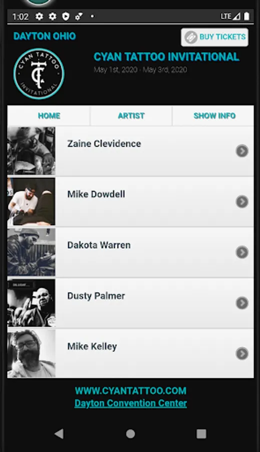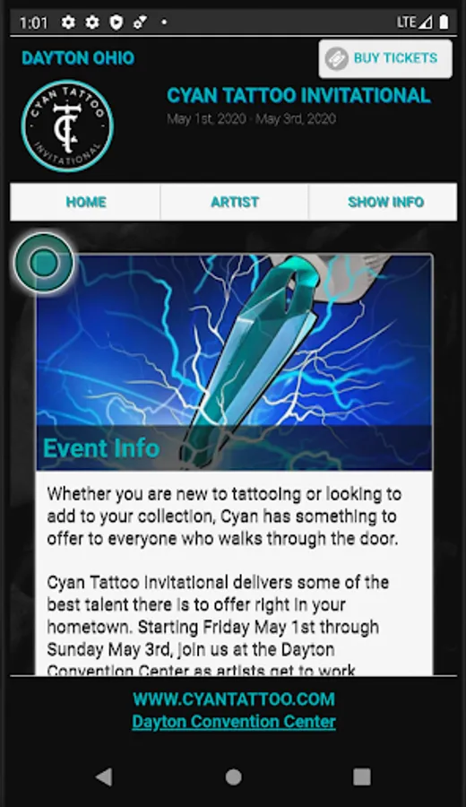 The Cyan Tattoo App was designed to give you a digital behind the scenes access to the artist and vendors attending The Cyan Tattoo Invitational May 1st 2020 - May 3rd 2020 in Dayton Ohio. We wanted to make connecting and interacting with our artists and vendors simple! You will have direct access to artist instagrams, contact information and more all in one easy to access location. You will be able to book an appointment with your favorite artist directly from this app. Show info, news and events all accessible via this easy to use interface. If you haven't already purchased tickets to our show, they will be available for purchase here as well as at cyantattoo.com. Stay in the loop as new artist and vendors are being added everyday. See you May 1st 2020 - May 3rd 2020 at the Dayton Convention Center for the Cyan Tattoo Invitational.