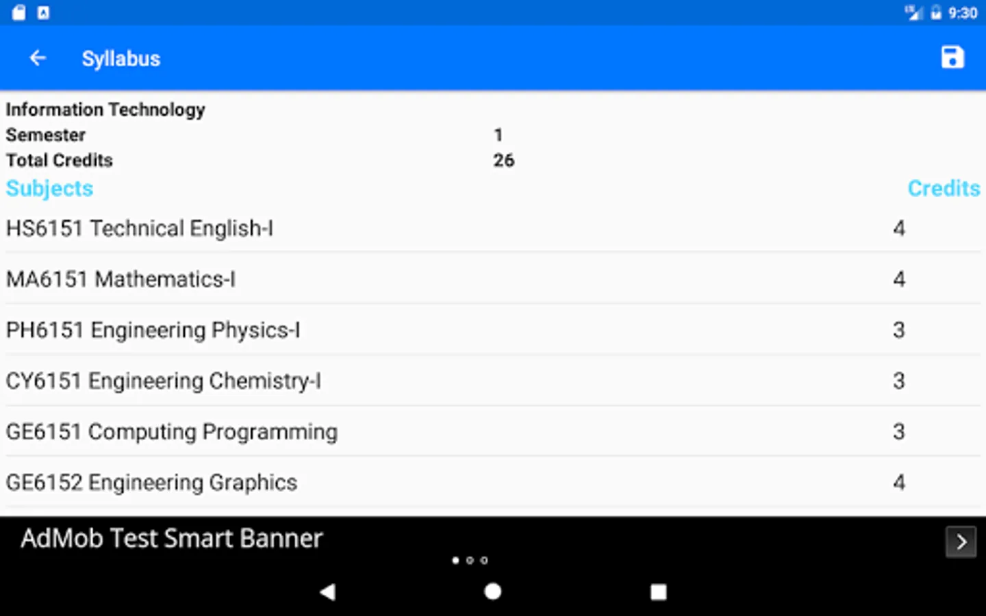 This is not an official android application of Anna University and data provides here was not provided by me. It was taken from the official website http://www.annauniv.edu/academic_courses/index.html. It may have some errors, because I have to add it manually.