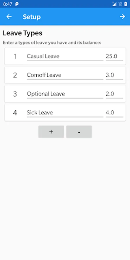 Custom Leave Type - Casual, Comoff , Sick Leave etc…