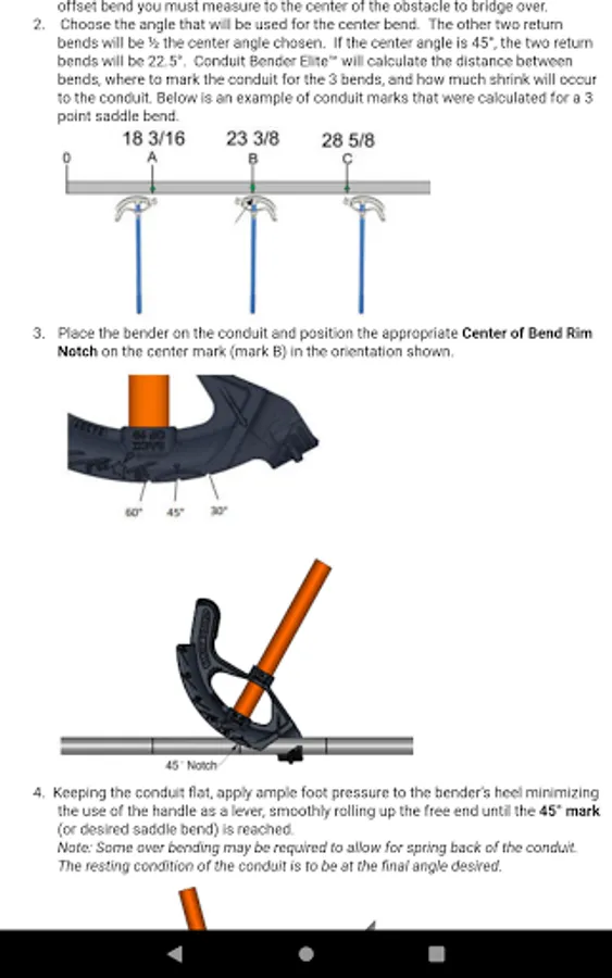 Conduit Bender Elite™ is an easy-to-use calculator designed to save Electricians time calculating, marking, and bending conduit. Packed with diagrams and step-by-step help for the various bends you will be performing, Conduit Bender Elite™ is unlike any conduit bender app in the market. It simplifies the math and lets you focus on the installation.