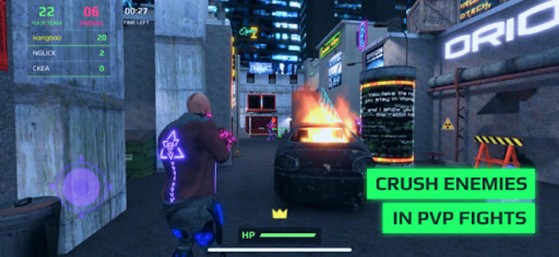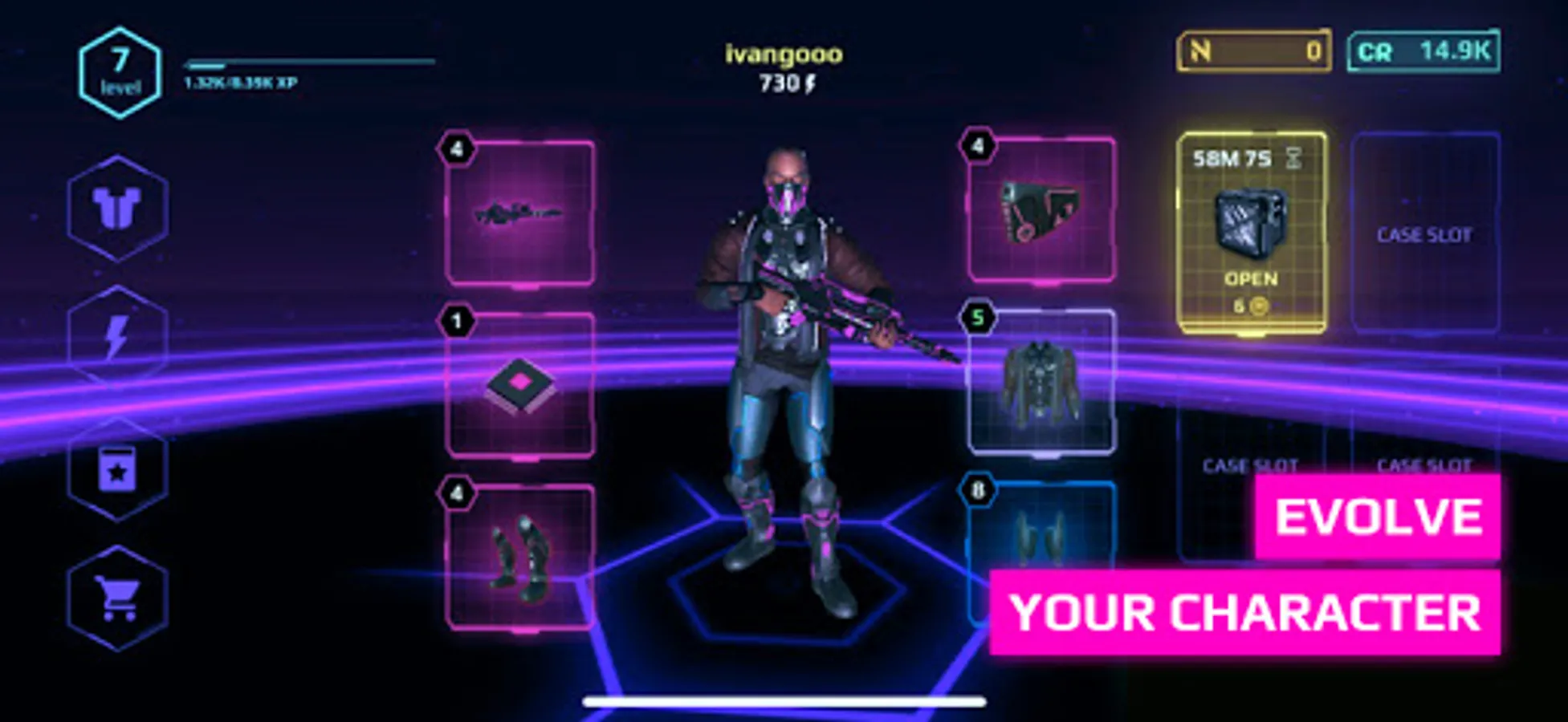 Futuristic PvP battles in the neon cyberpunk world! Create your own character, collect loot, and upgrade your weapons to become the strongest on the battlefield, leading your own squad!