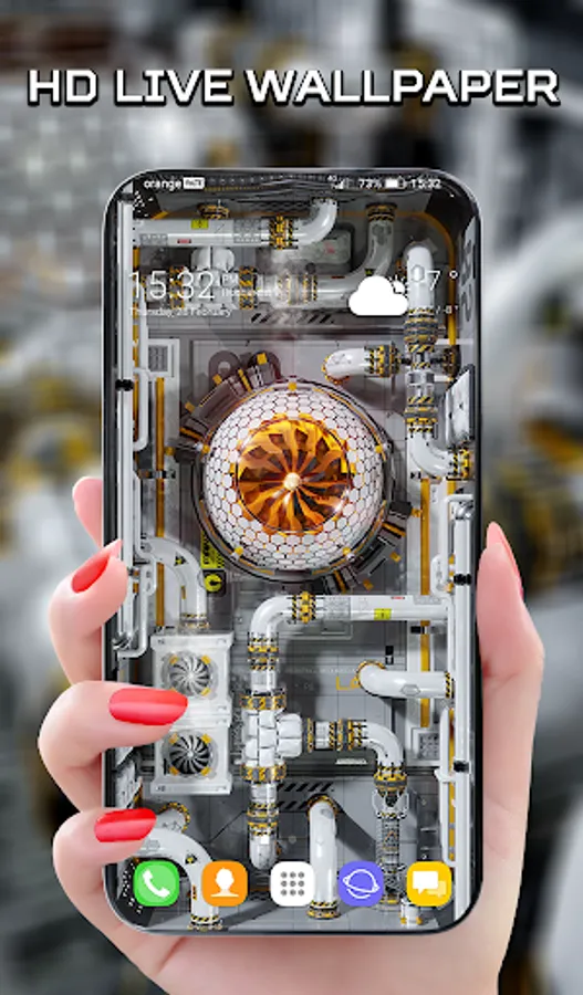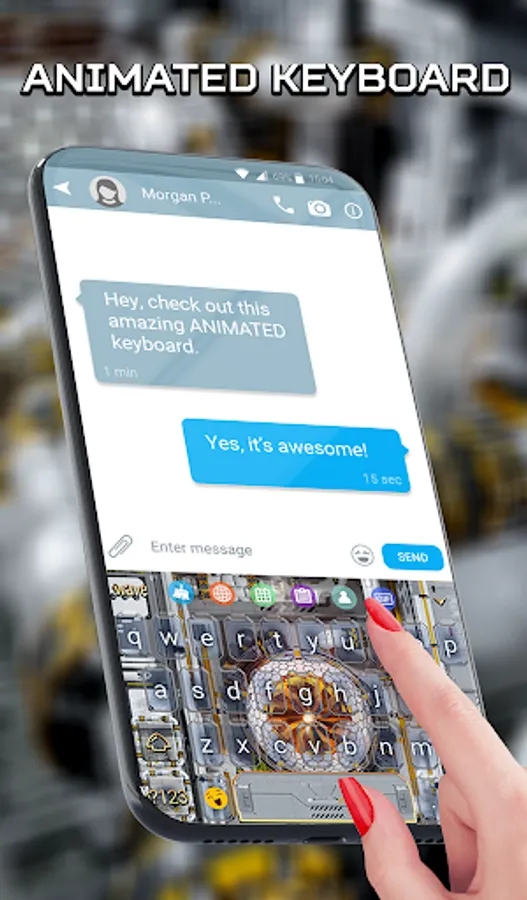 The custom call screen design is the final touch of our free theme Cyberpunk 3D Wallpaper & Custom Keyboard - Sci Fi. Fans of moving backgrounds love this cool dynamic twist. Try this option for a full Android custom look!