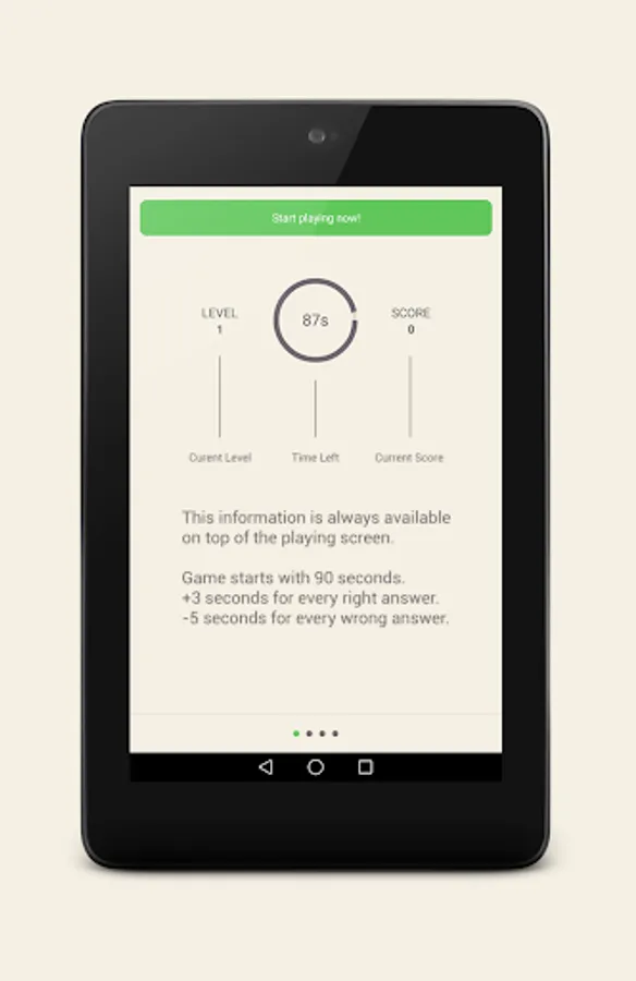 ★ Classic: You get 90 seconds to find as many combinations as possible. Scoring a correct combination gives you 3 seconds more, whereas a wrong combination will deduct 5 seconds from your remaining time.